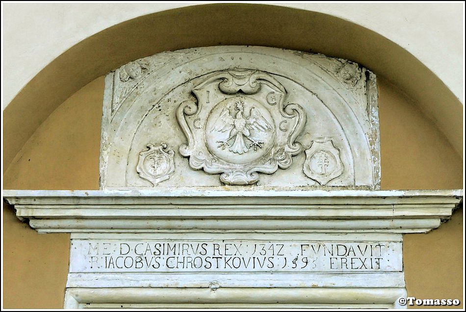 drzwiami kruchty zobaczyć możemy płaskorzeźbę orła w koronie i napis