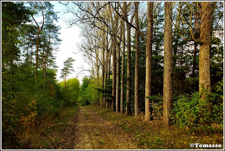 Opuszczamy Śladków Duży i idziemy w stronę wsi Młyny, drogą pośród drzew mieniących się odcieniami jesieni.